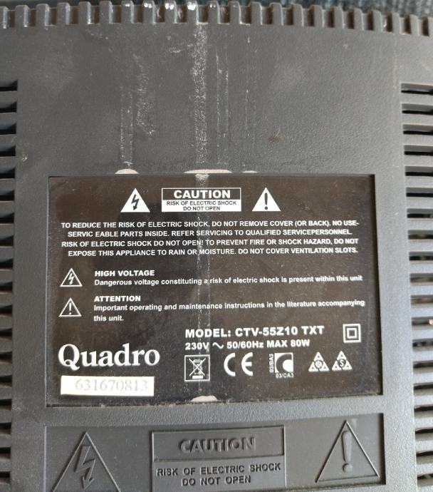 Quadro TV 55. cm s grbom, malo korišten, donosim samo uz predujam, van Splita 0.50 € po kilometru, Tv je trenutno u Dicmu, zvati samo pon.-pet. od 9.-17. ili poruka vikendom do 17. sati !