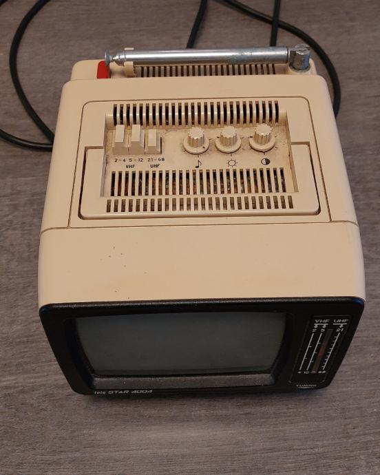 Prodajem starinski portabilni televizor, ne može se upaliti, no dobar električar to riješi za čas.