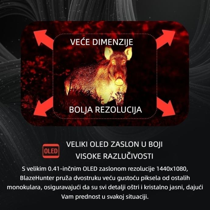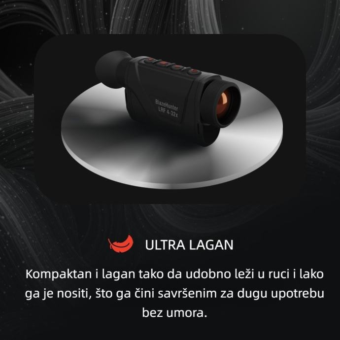 ATN BlazeHunter 335 LRF drugi je iz najnovije serije termovizijskih monokulara iz ATN-a ali s ugrađenim laserskim daljinomjerom. Senzor je 384×288, 50 Hz, 12 µm manje od 18mK za savršenu sliku u svim uvjetima promatranja. Ovaj model ima ugrađen laserski daljinomjer koji mjeri udaljonosti do 1000 metara i ima promjer objektiva od 35mm i povećanje od 4x do 32x. Kut gledanja kod ovoga modela je 7.8°x5.9°, zaslon uređaja je 1440×1080. Otklon oka je 15mm. Uređaj je kompatibilan sa svim iOS i Android sustavima te koristi ATN BLAZE aplikaciju za upravljanje uređajem preko mobilnog telefona. 6 paleta boja, Bluetooth, Wi-Fi, mikrofon, lagani zoom. interna memorija za pohranu fotografija i videa! U uređaju je izmjenjiva punjiva baterija 18650 koja daje snagu za 7 sati neprekidnog promatranja. U kompletu dolaze dvije baterije 18650 i punjač. Stupanj vodootpornosti je IP67 Dimenzije su 172x53x74mm, težina je svega 375 grama bez baterije. Domet ovoga modela iznosi 1800 metara a 100% identifikacija čovjeka je 370 metara. Radna temparatura uređaja je od -30° do +50°.