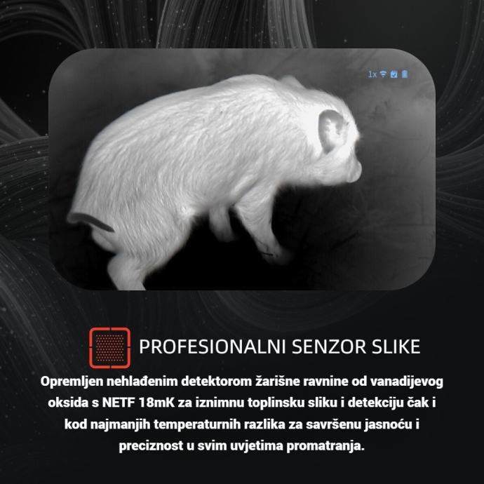 ATN BlazeHunter 635 treći je iz najnovije serije termovizijskih monokulara iz ATN-a. Senzor je 640×512, 50 Hz, 12 µm, manje od 18mK za savršenu sliku u svim uvjetima promatranja. Ovaj model ima promjer objektiva od 35mm i povećanje od 2.5x do 20x. Kut gledanja kod ovoga modela je 12.4°x5.10°, zaslon uređaja je 1440×1080. Otklon oka je 15mm. Uređaj je kompatibilan sa svim iOS i Android sustavima te koristi ATN BLAZE aplikaciju za upravljanje uređajem preko mobilnog telefona. 6 paleta boja, Bluetooth, Wi-Fi, mikrofon, lagani zoom. interna memorija za pohranu fotografija i videa! U uređaju je izmjenjiva punjiva baterija 18650 koja daje snagu za 7 sati neprekidnog promatranja. U kompletu dolaze dvije baterije 18650 i punjač. Stupanj vodootpornosti je IP67 Dimenzije su 172x53x74mm, težina je svega 360 grama bez baterije. Domet ovoga modela iznosi 1800 metara a 100% identifikacija čovjeka je 370 metara. Radna temparatura uređaja je od -30° do +50°.