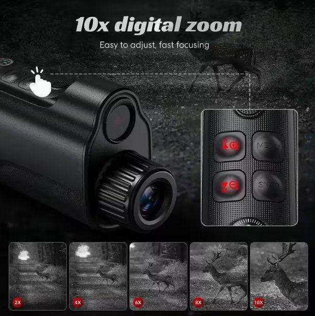 HIJOY Monokularne noćne naočale s 10X digitalnim zumom i kompasom