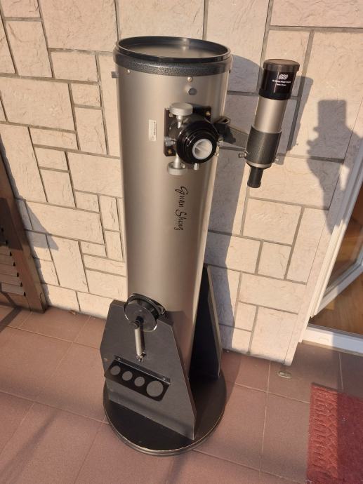 Prodajem teleskop Dobson GSD-200C s objektivom promjera 200 mm. Drvena baza teleskopa ima blago oštećenje koje ne utječe na funkcionalnost.