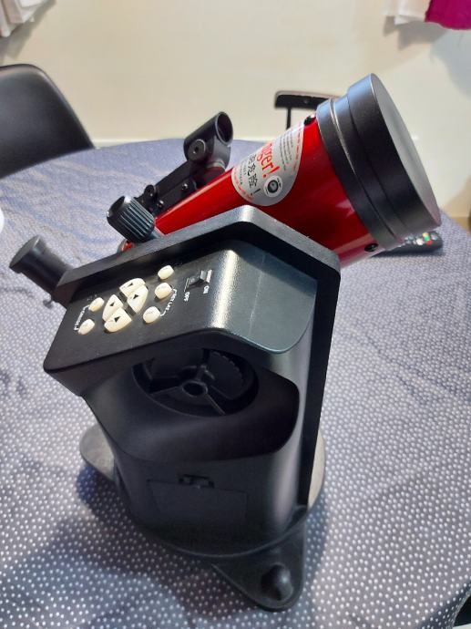 Teleskop iz naslova sa originalnom ambalazom okulari 9mm i 25mm, motorizirana montaza, diy go to modulom za spajanje na pametni telefon putem aplikacije Synscan. Vanjski ispravljač za napajanje.