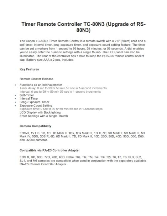 1) Canon cameras timing remote Wire control, maker "FB"(zamjena za Canon RS-80N3 / TC-80N3) - 50 EUR