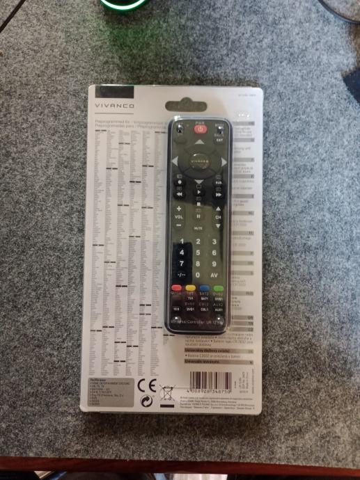 Prodajem novi Vivanco univerzalni daljinski upravljač. Radi se o modelu Universal Controller 12 u 1, što znači da može upravljati s čak 12 različitih uređaja poput televizora, DVD playera, satelitskog prijemnika i sličnih audio/video uređaja. Dizajn je ultraplosnate izvedbe, a u pakiranju su već uključene baterije. Jednostavan je za postavljanje i korištenje.