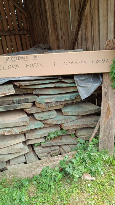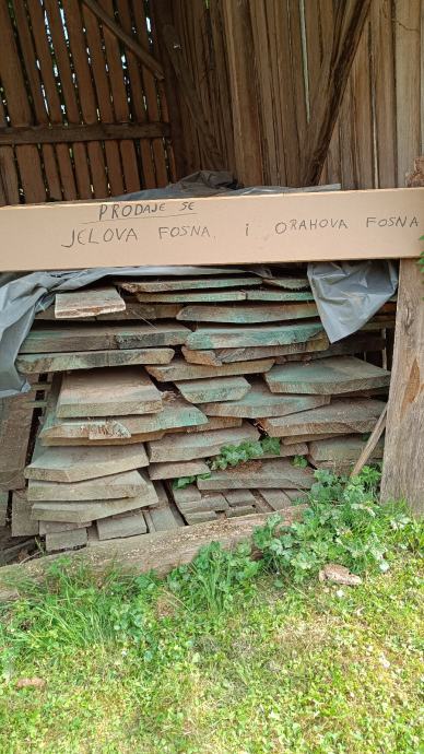 Prodajem suhu fosnu oraha i jelovine na prirodnom zraku suseno . Od svega ima oko pola m3. Drvo je zaštićeno premazom za nametnike.