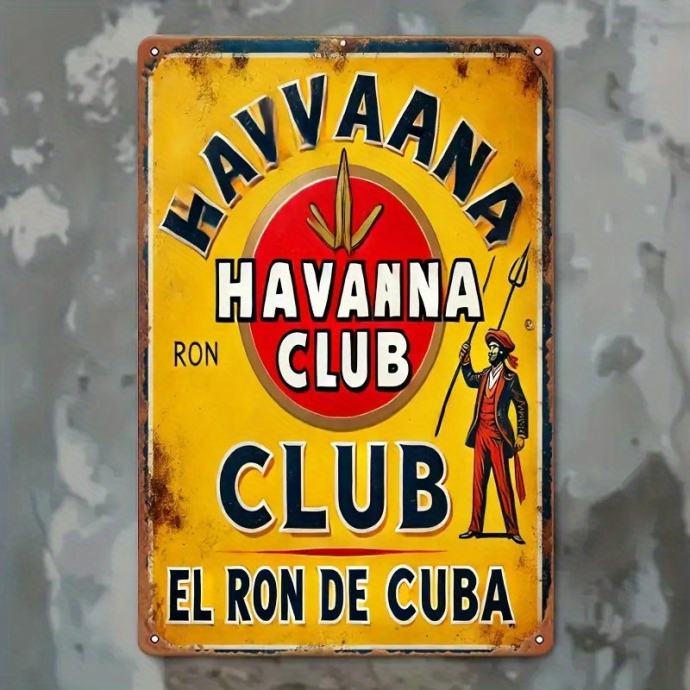 2D ravna ravnina - vintage drveni znak s kubanskim rumom - vintage zidna umjetnost za dom, bar, kafić, za muški dekor u špilji | Izdržljivi drveni znak s oslikanim ukrasom | Pogodno za blagdansku rustikalnu zidnu umjetnost: Dan zahvalnosti, Noć vještica