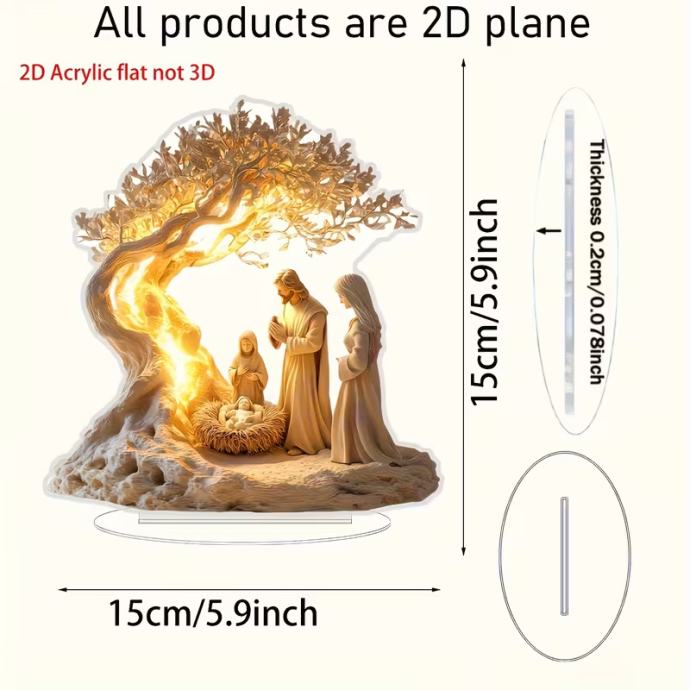 2D ravne, 2D ravne akrilne jaslice s Marijom, Josipom, Isusom i drvcem - savršeno za izložbu doma, ureda ili crkve, uredski dekor | Svijetleći ukras, božićni središnji ukras, 2D ravne, najbolje za Božić