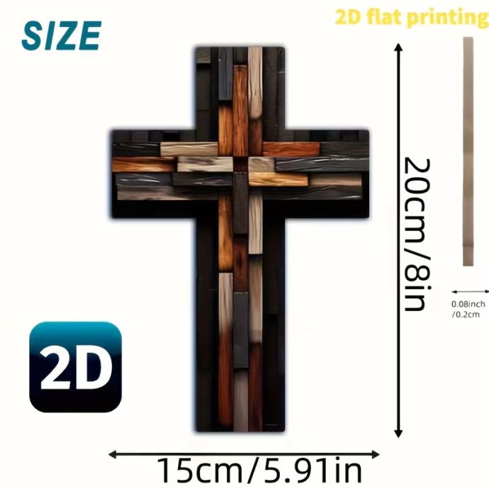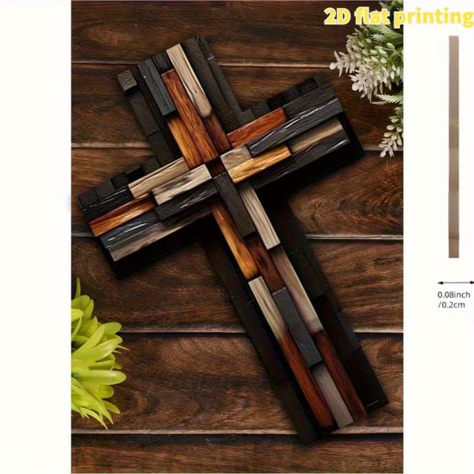 2D ravni - 2D printani drveni križ | Umjetno drvo, zidni, pogodan za spavaću sobu, dnevni boravak, crkvu, unutarnji/vanjski dekor, svakodnevni i blagdanski dekor, novogodišnji poklon