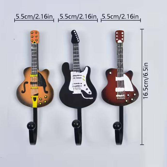 3 kom. vintage zidne kuke u obliku glazbenih instrumenata - drveni viseći ukras u obliku gitare, basa i violine/harfe - izdržljive vješalice s glazbenom tematikom za dom, bar, kafić, glazbenu sobu - čvrsta pohrana (jednostavna ugradnja, bez vijaka), 2D ravna