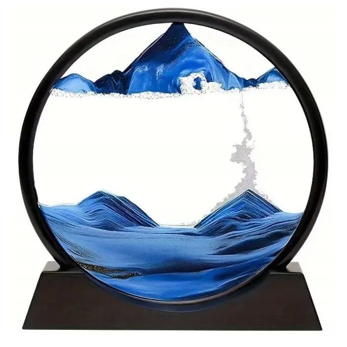 Dodajte dodir elegancije i opuštanja s 3D staklenom pješčanom slikom! Ovaj jedinstveni ukras stvara hipnotičke uzorke, jer pijesak nježno pada i oblikuje jedinstvene pejzaže poput planina, dina i oceana.