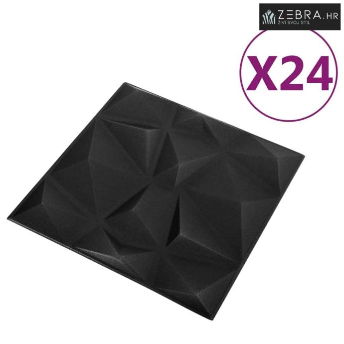 3D zidni paneli 24 kom 50 x 50 cm dijamantno crni 6 m² - Dijamantno cr