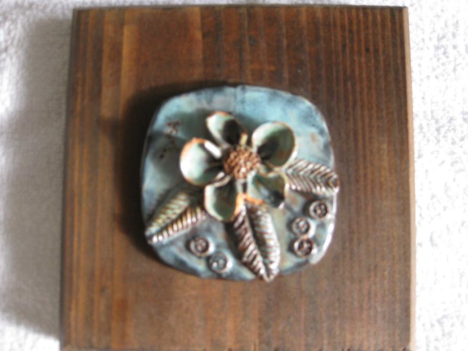 - zidna keramika (tirkizni cvijet) na drvenoj podlozi 14x14 cm,