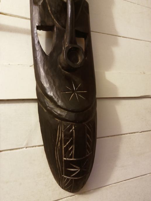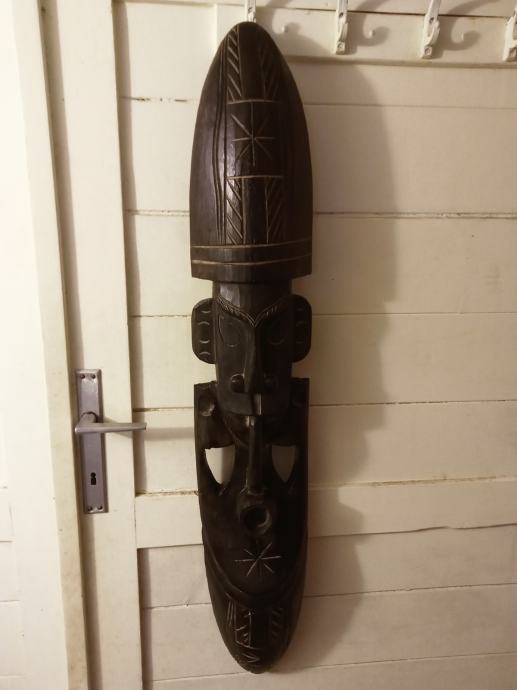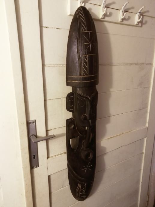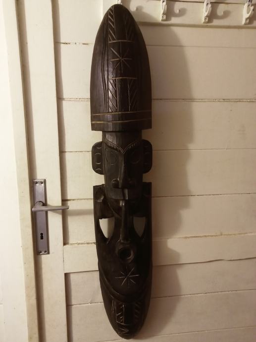 Original afrička drvena maska visine 100 cm a širine 17cm sa konopčićem sa stražnje strane za objesiti na zid