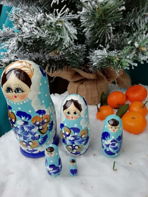 Prodajem set drvenih, ručno bojanih babuški, novo.