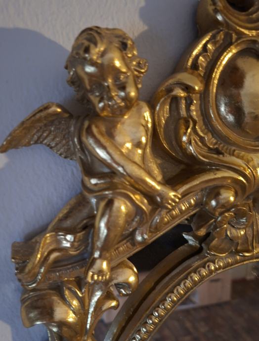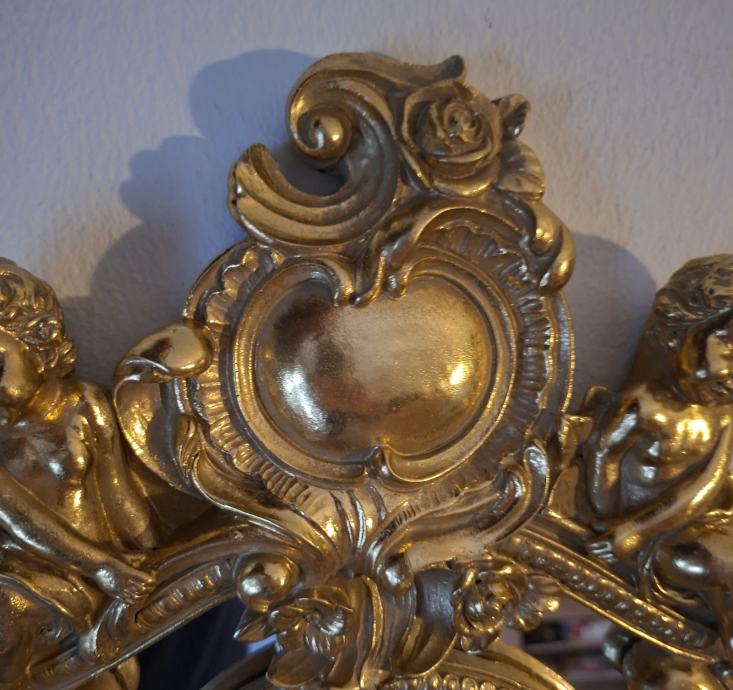BOGATO UKRAŠENO ZIDNO OGLEDALO S MOTIVOM ANĐELA U BAROKNOM STILU