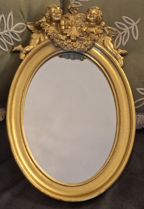 - dekorativno zidno ogledalo s bogato ukrašenim okvirom u baroknom/rokoko stilu, čvrstog okvira, stabilno i u odličnom stanju, srednje veličine (48×30 cm), lako uklopivo u stan, hodnik ili kao dodatak komodi - pravi statement komad koji odmah privlači pažnju, idealno za klasične interijere, ali i kao kontrast u modernom prostoru.