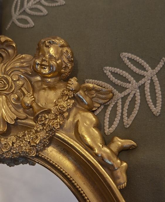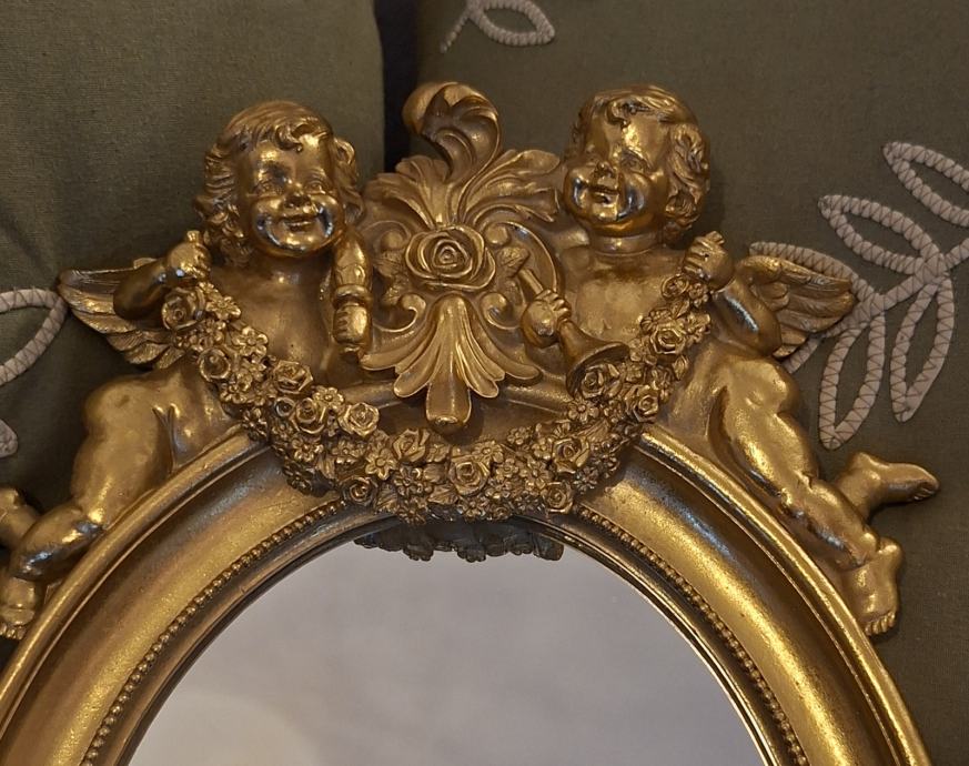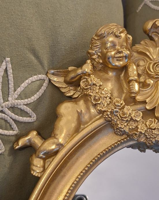 BOGATO UKRAŠENO ZIDNO OGLEDALO S MOTIVOM ANĐELA U BAROKNOM STILU