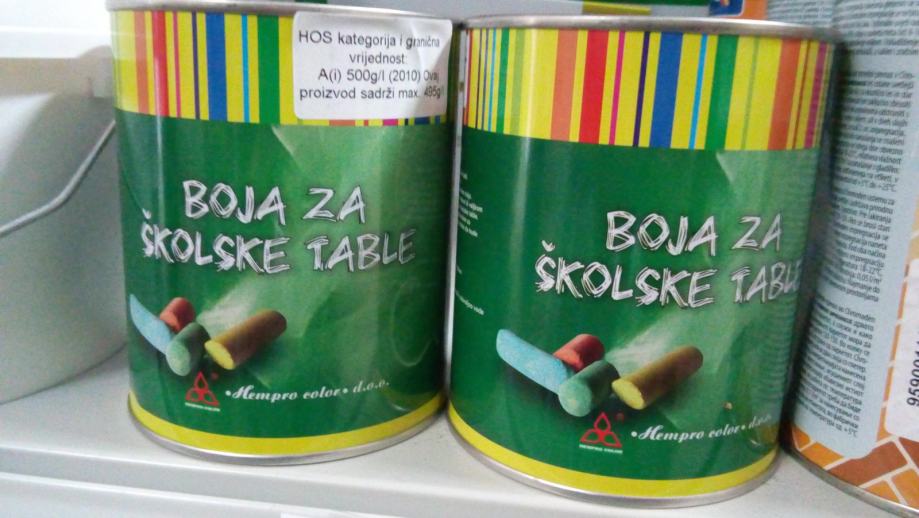 Boja za školske ploče, pakiranje o 0,75 L. Utrošak boje je 0,75 g/ 4-7 m2 u jednom sloju.