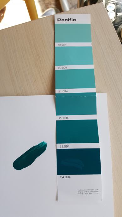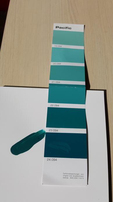 Prodajem JUB miksanu boju za zid u nijansi petrolej. Karta boja Pacific.