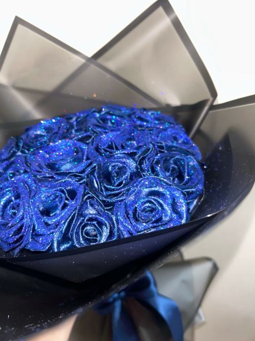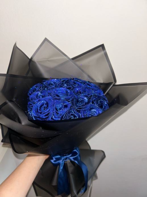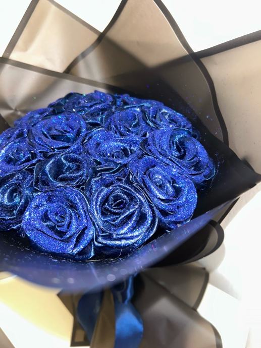 Prodajem ručno rađen buket s ružama od satena (na ružama su šljokice)