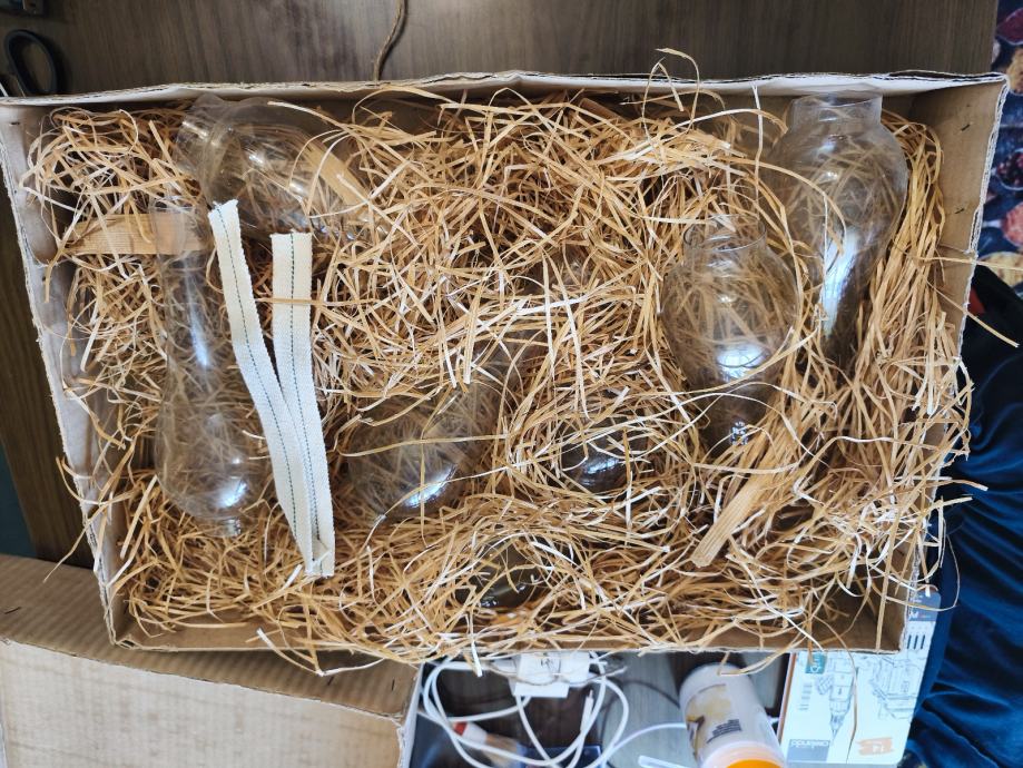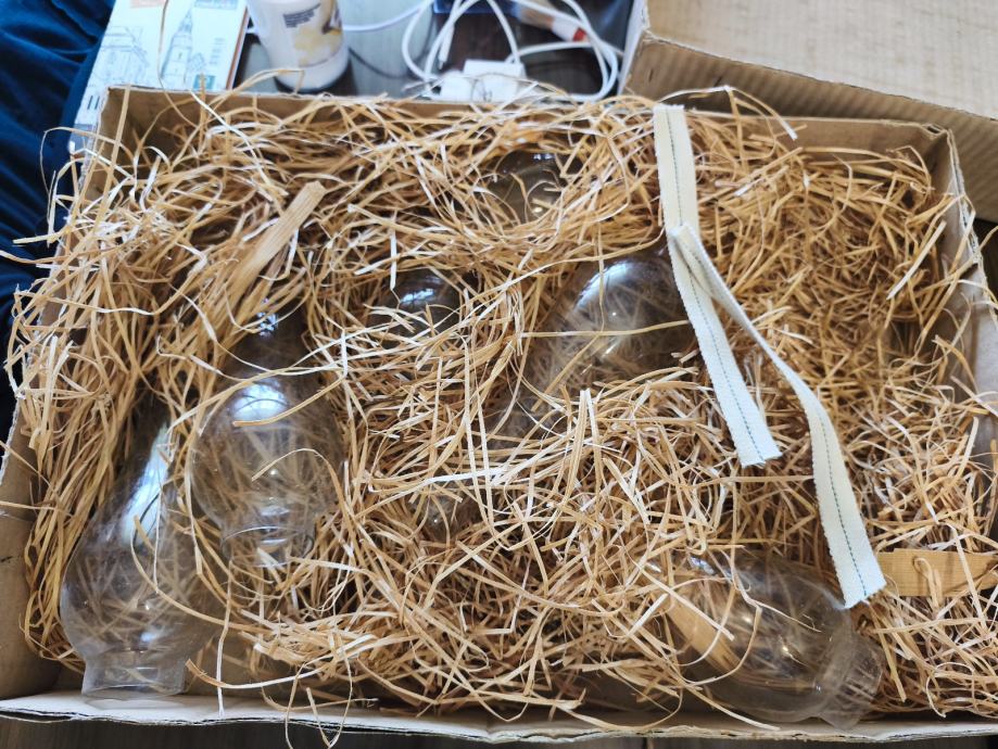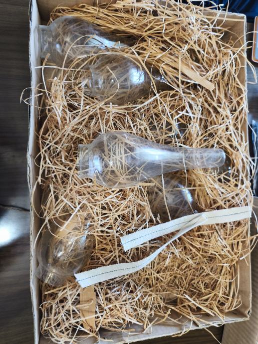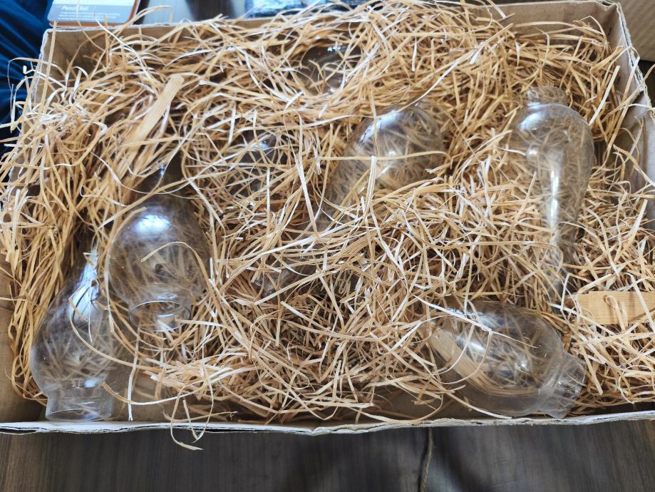 Prodajem 7 cilindara za fenjer,ne koristenih iz 80ih u vintage kutiji. Gornji otvor 3 cm,donji 4,70 cm ,duzina 24 cm. Prodajem u kompletu. Idealno za ljubitelje starih stvari i restauriranja fenjera.