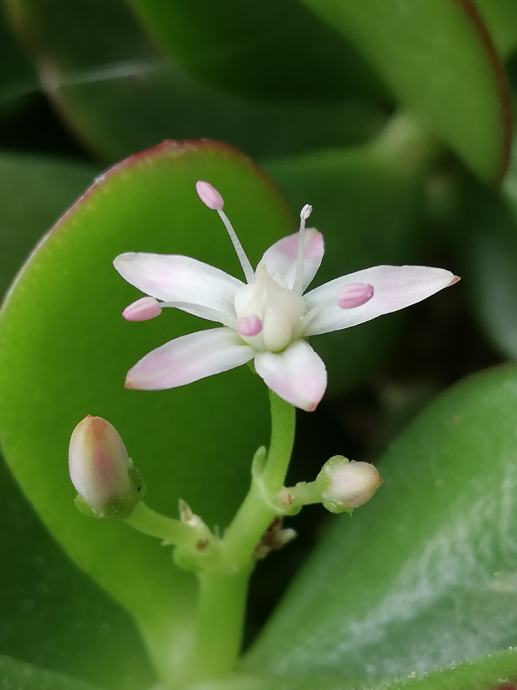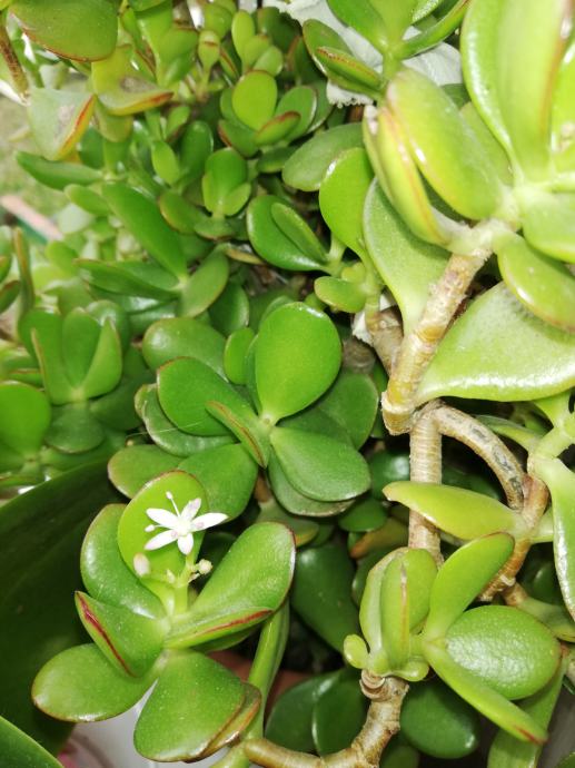Starija biljka zimi cvate sitnim bijelo ružičastim cvjetovima.