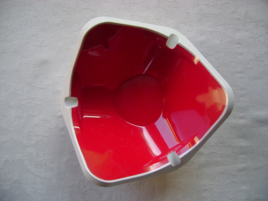 Crveno-bijela dizajnerska pepeljara, dimenzije cca 12 x 12 x 5 cm, izvrsno očuvana, bez ikakvih oštećenja - stanje je vidljivo na slikama.