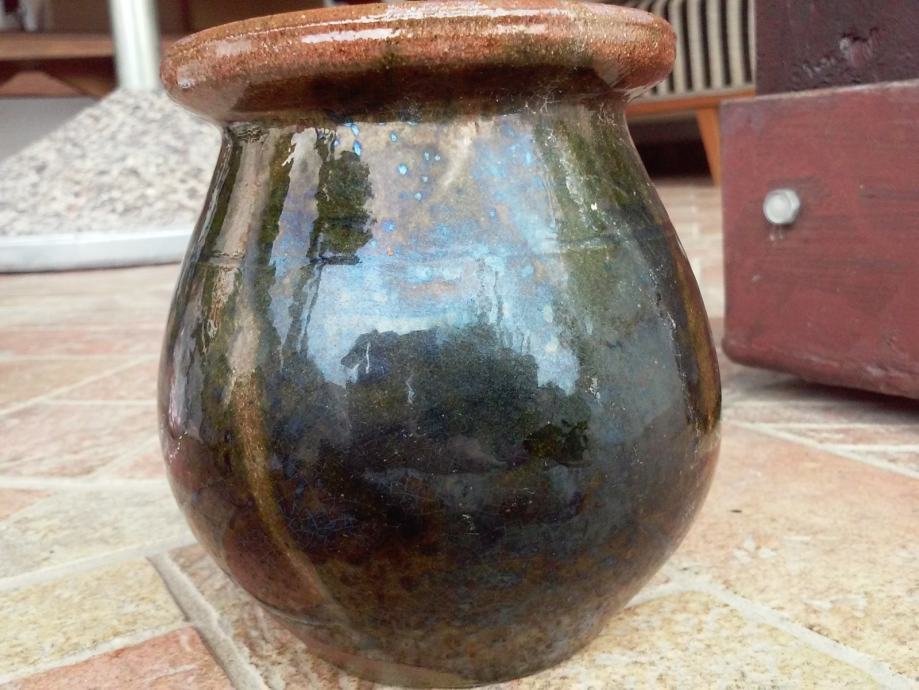 Prodajem starinski glineni pečeni i glazirani izvana i iznutra ćup (starina)