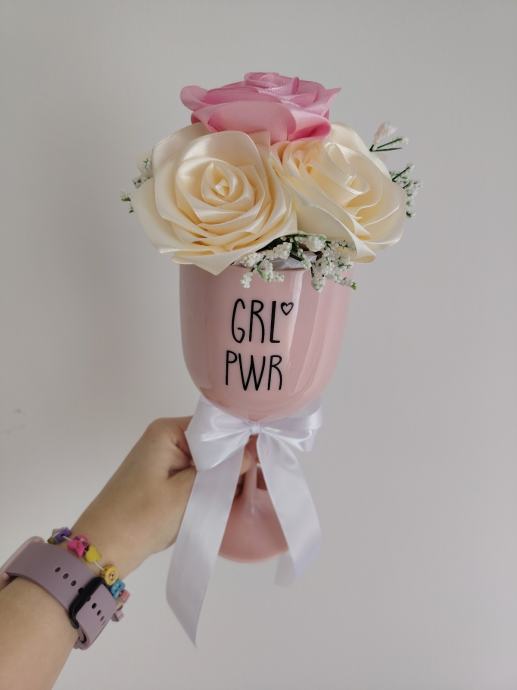 Cvijeće od satena u plastičnoj čaši