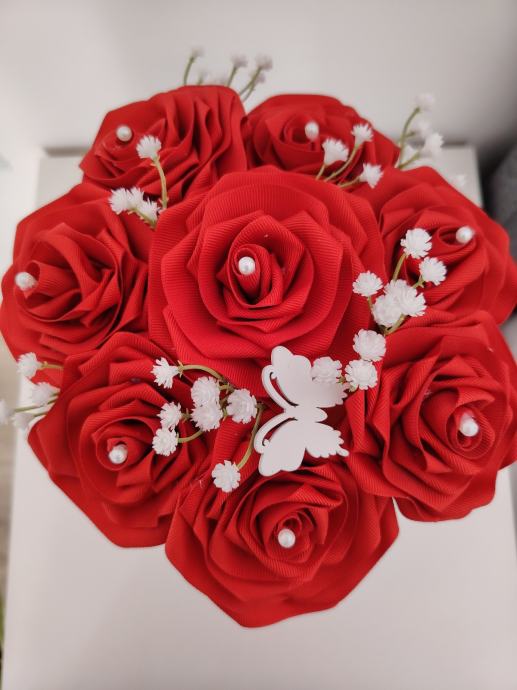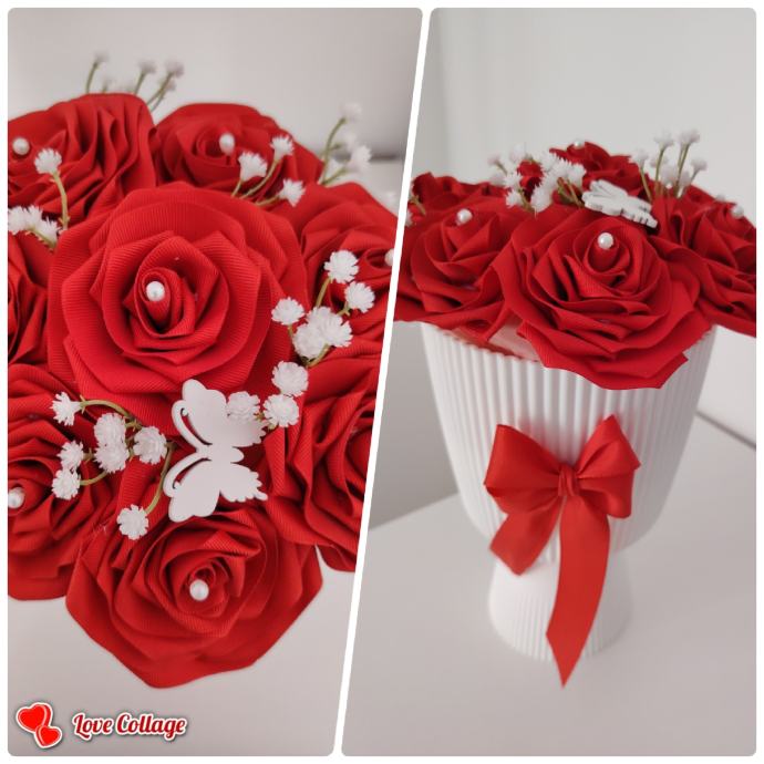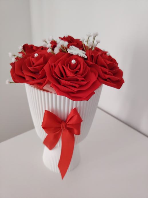 Cvijeće od saten u plastičnoj tegli