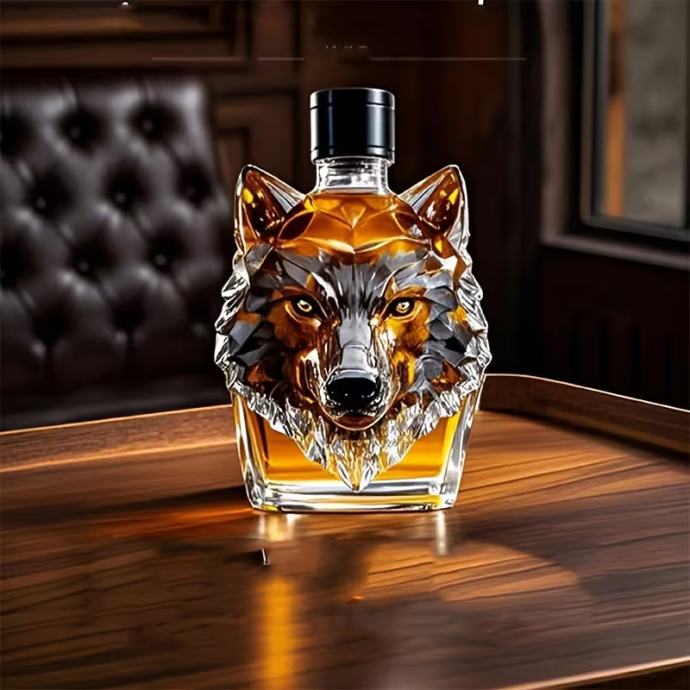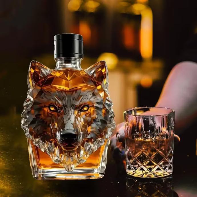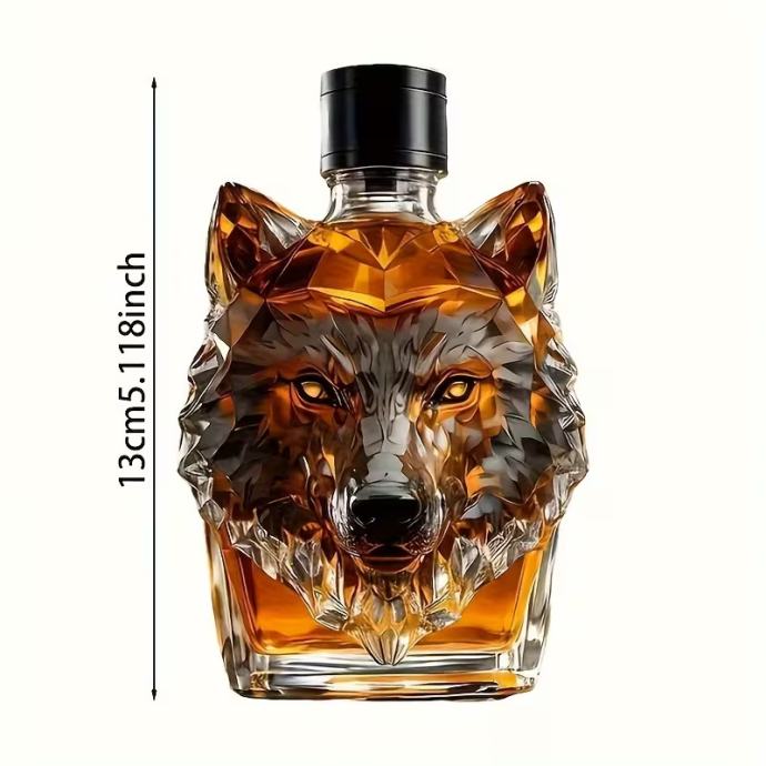 Dekanter za viski s dizajnom vučje glave - staklena boca od 350 ml