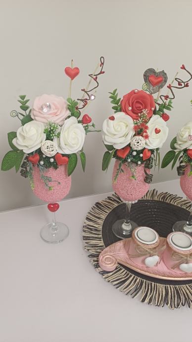 Rucni rad,dekeroriane staklene case.U svaku se moze jos dodati slatkis(30 centi).idealni trajni poklon za vase drage osobe....