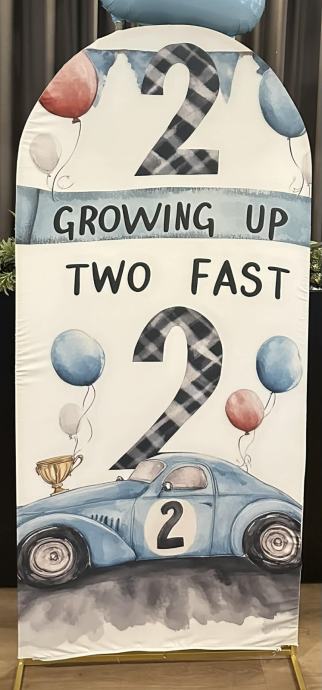 Prodajem dekoraciju za 2.rođendan, platno veličine 80x180cm bez tragova korištenja. Nije uključen luk.