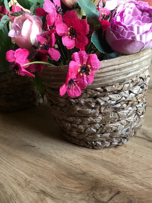 - od plastičnog cvjetnjaka i rustikalne pletenice od papira i prelakirane bezbojnim lakom