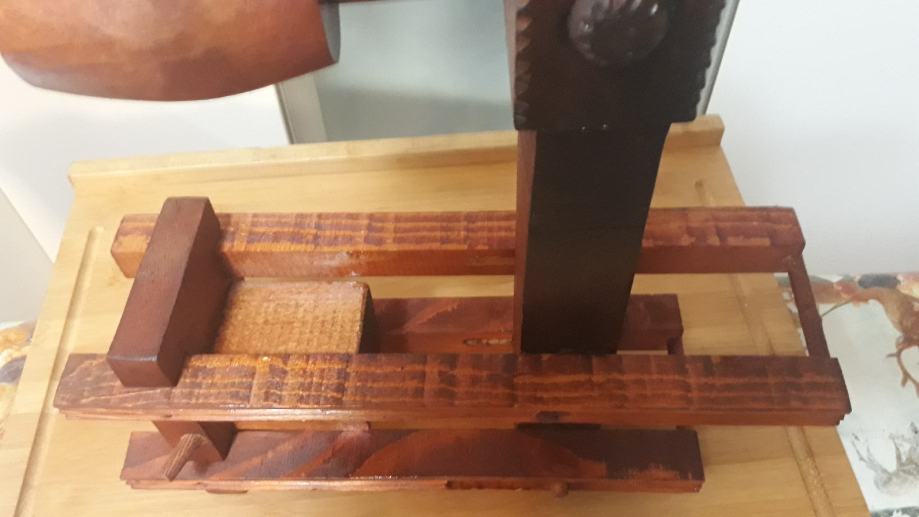 Drveni dekorativni predmet kopija starih preša za grožde.visine 32 dužline 32 i širine 10.moguče slanje poštom.0958241802