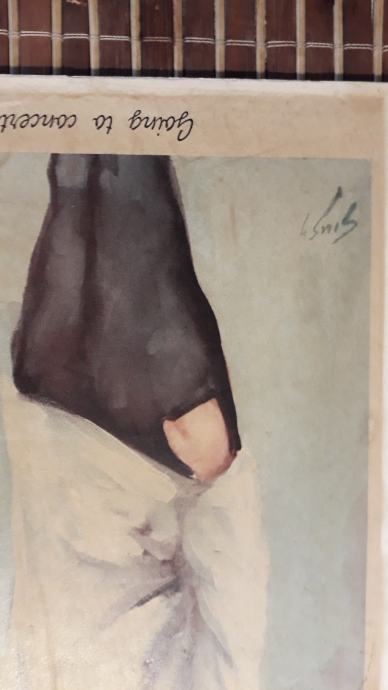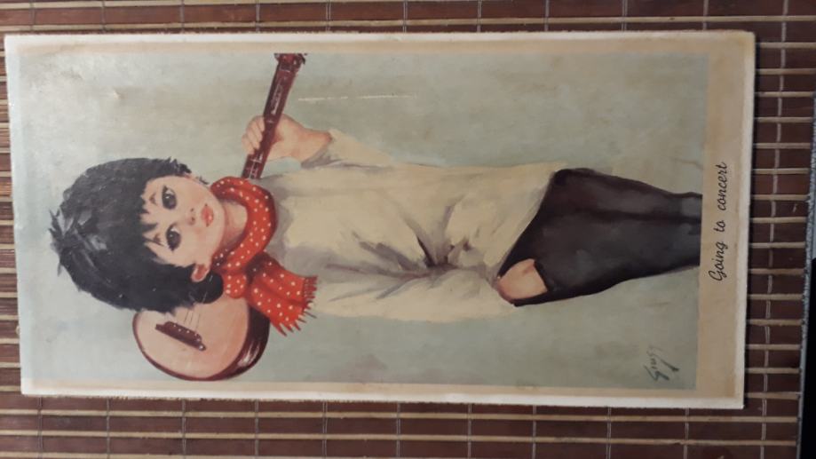 Stara zidna dekoracija.slika djevojčice zaljepljena na lesonit.stanje vidljivo