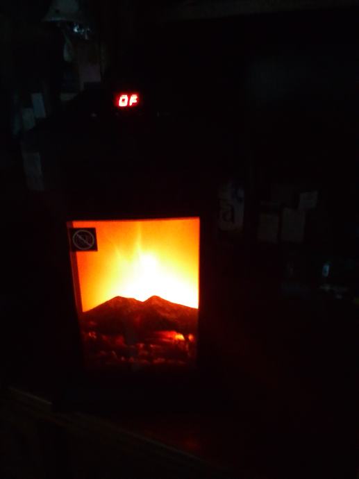 Prekrasna lampa sa imitacijom vatre koja kao da gori,ima daljinski,unutar je grijalica sa ispitivanjem toplog zraka tako da možete temperirati prostoriju u kojoj jeste,samo isprobano,i nekorišteno