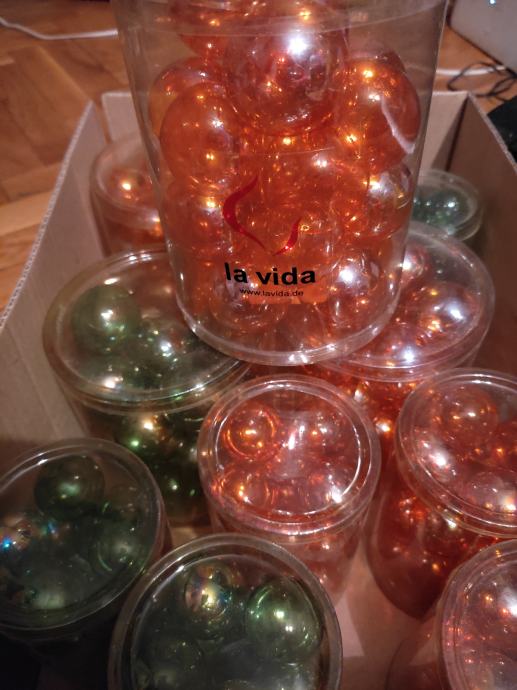 PRODAJEM DEKORATIVNE KUGLE SA SLIKE IMA VELIKIH I MALIH ZELENE I NARAĐASTE