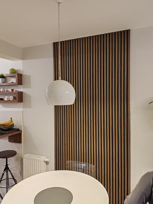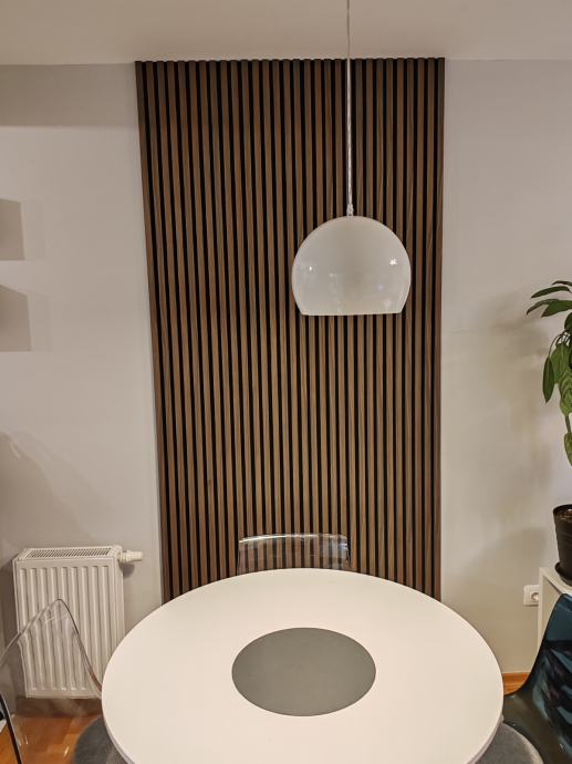 Na akusticnom filcu debljine 9 mm su letvice od MDF-a presvucene drvenim furnirom (NIJE folija).