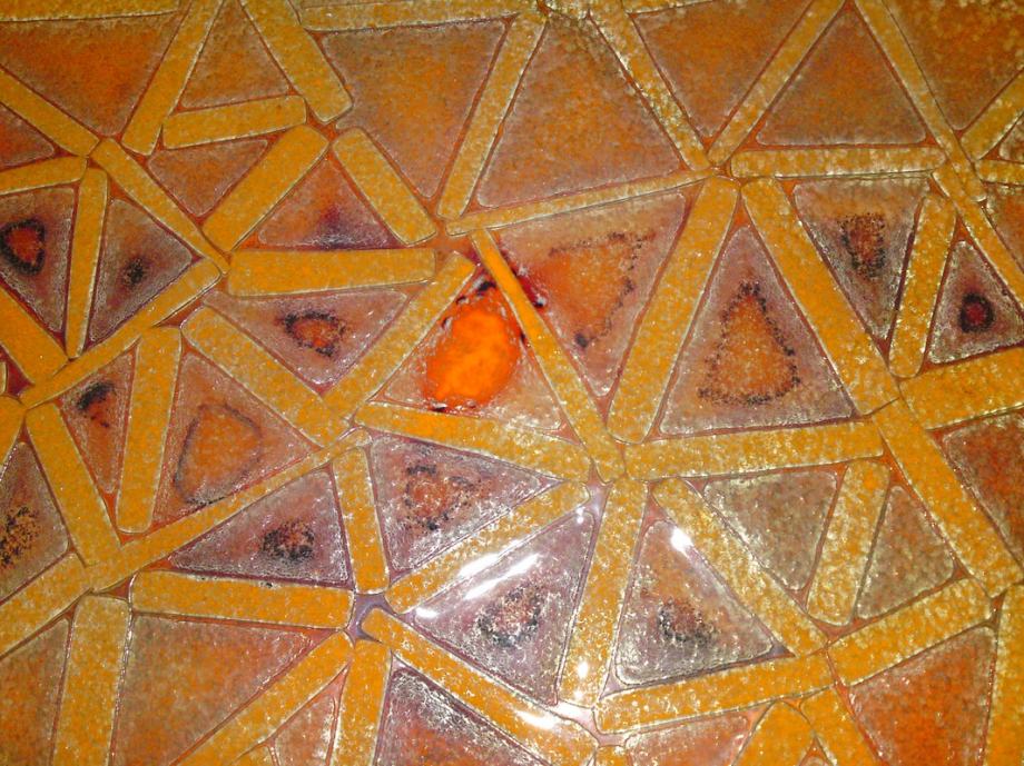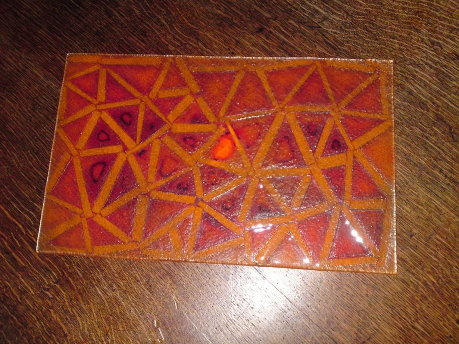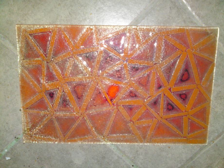 Dekorativna staklena ploča, narančasta, reljefna - za razne dekoracije; dimenzije: 40,0 x 25,0 cm.