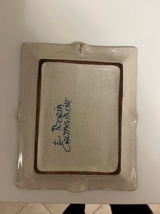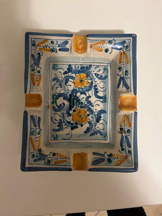 Plavo narancasta keramicka pepeljara rucni rad sa Sicilije