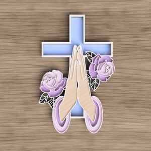 Slojeviti Drveni Križ s Molitvenim Rukama i Ružama – Simbol Vjere, Nade i Duševnog Mira