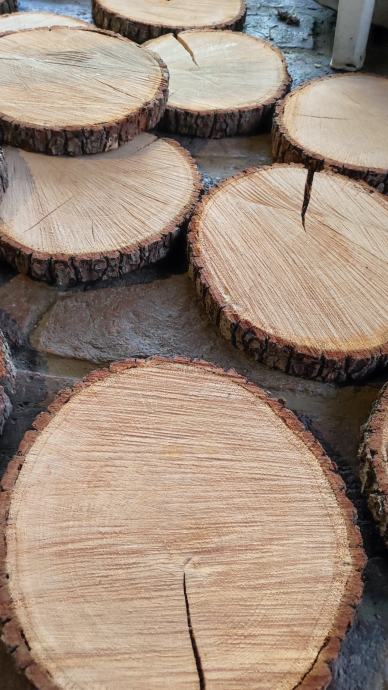 Prodajem drvene rezane podmetače. Ako uzimate veću količinu,cijena je 4€ po komadu. Ako vam treba tek pokoji komad, cijena je 5€ po komadu.