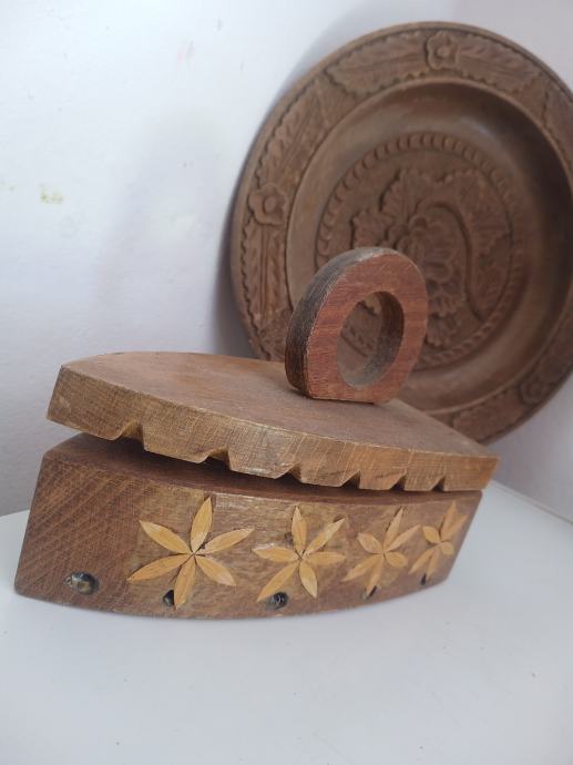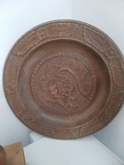 Drvena pega vaza tanjur i jos nesto figura iz kleti