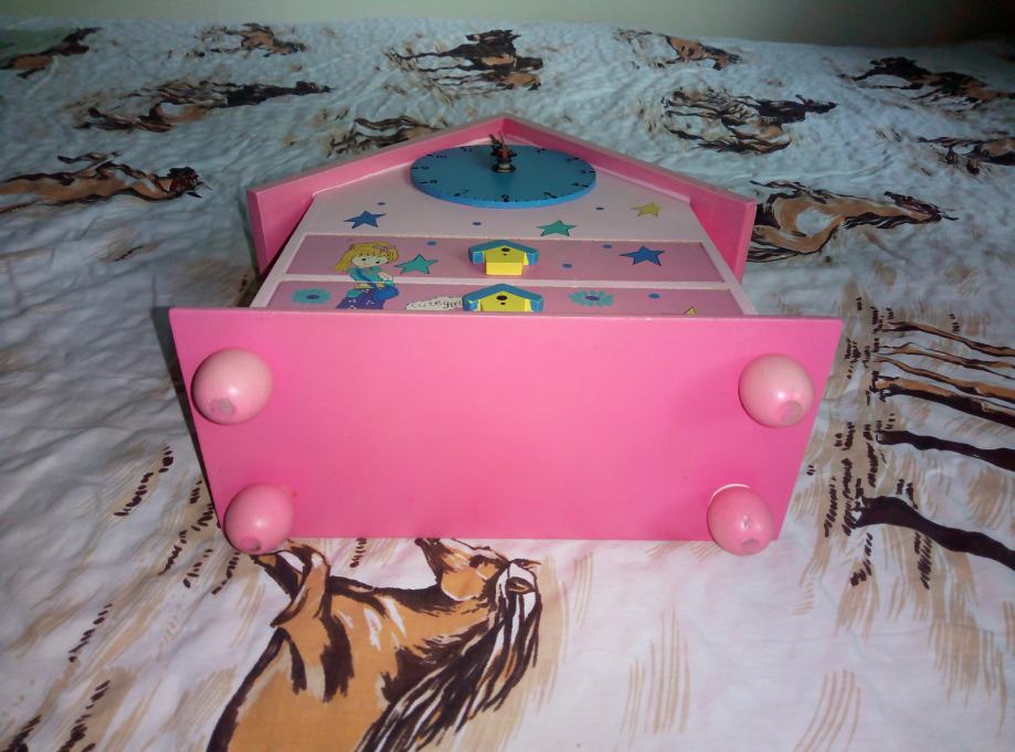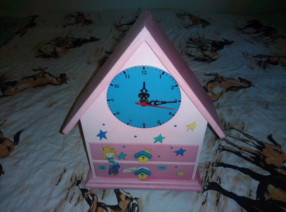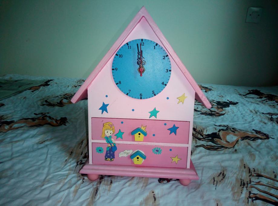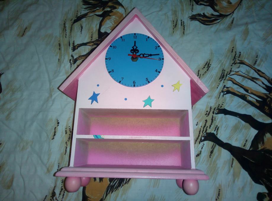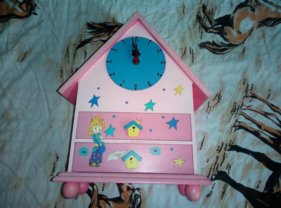 Drveni ukrasni sat, ručni rad, u dobrom stanju.