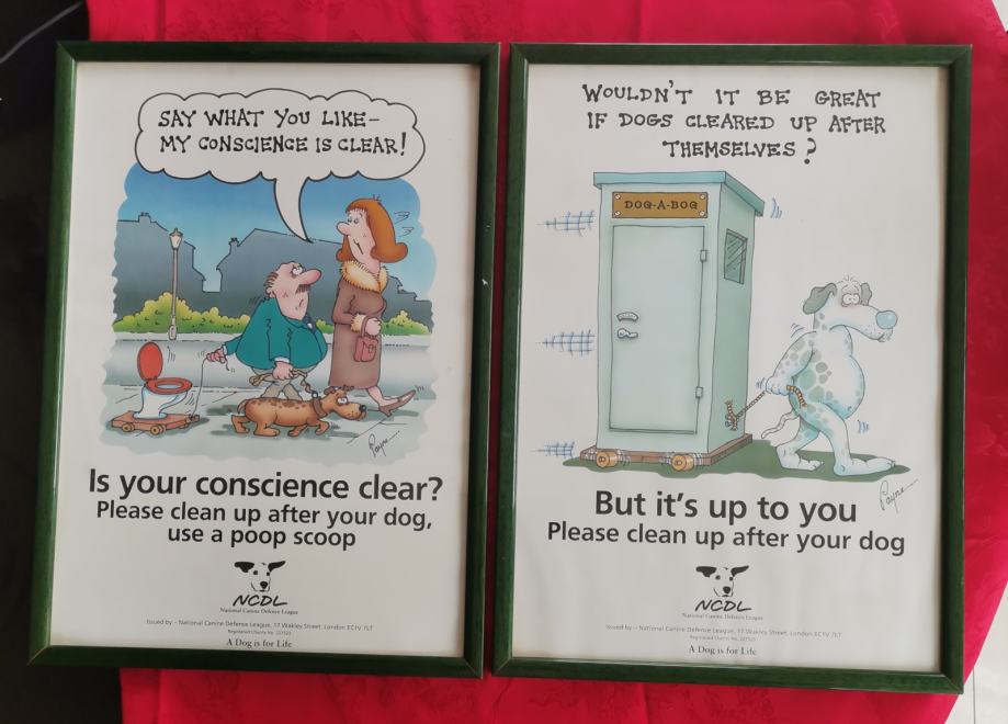 Dvije uramljene duhovite karikature sa psima, reprodukcije, dobro očuvane