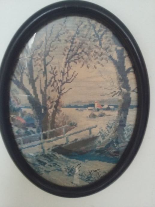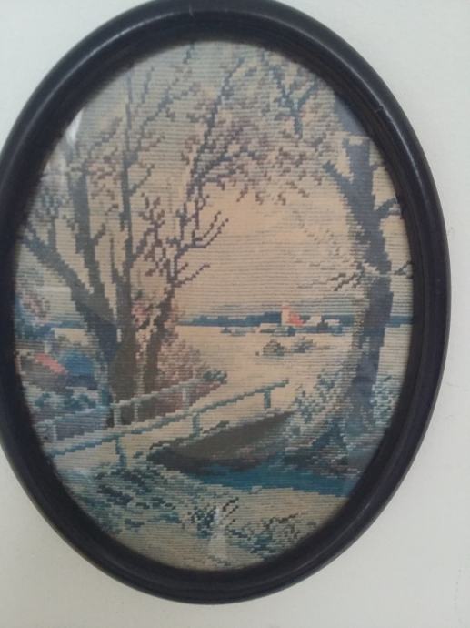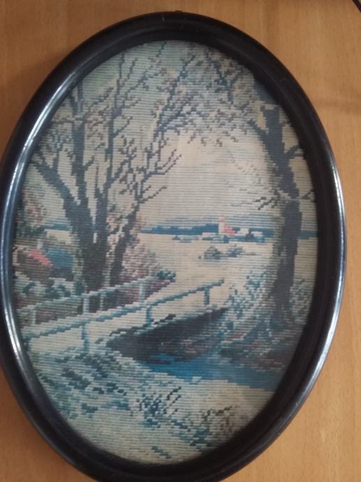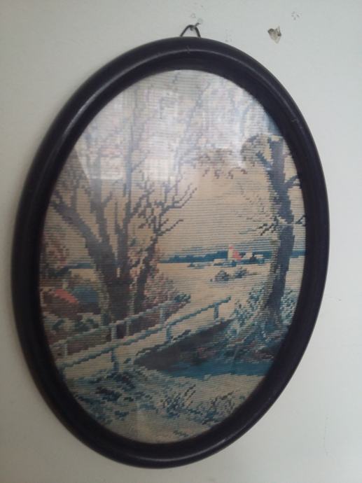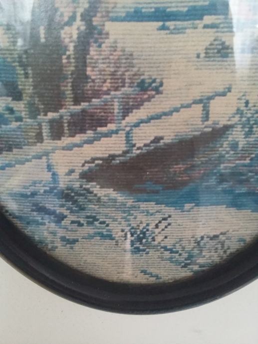 Prodajem vrlo uvjerljivu sliku goblena, uokvirenu u ovalni okvir, dim. 19 x 25cm.
