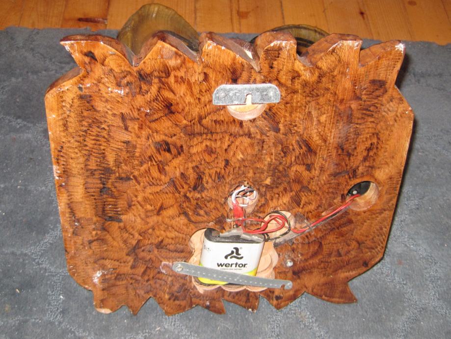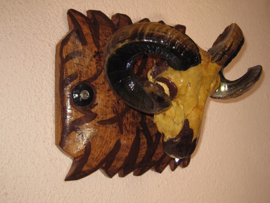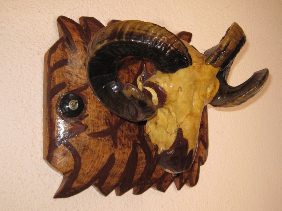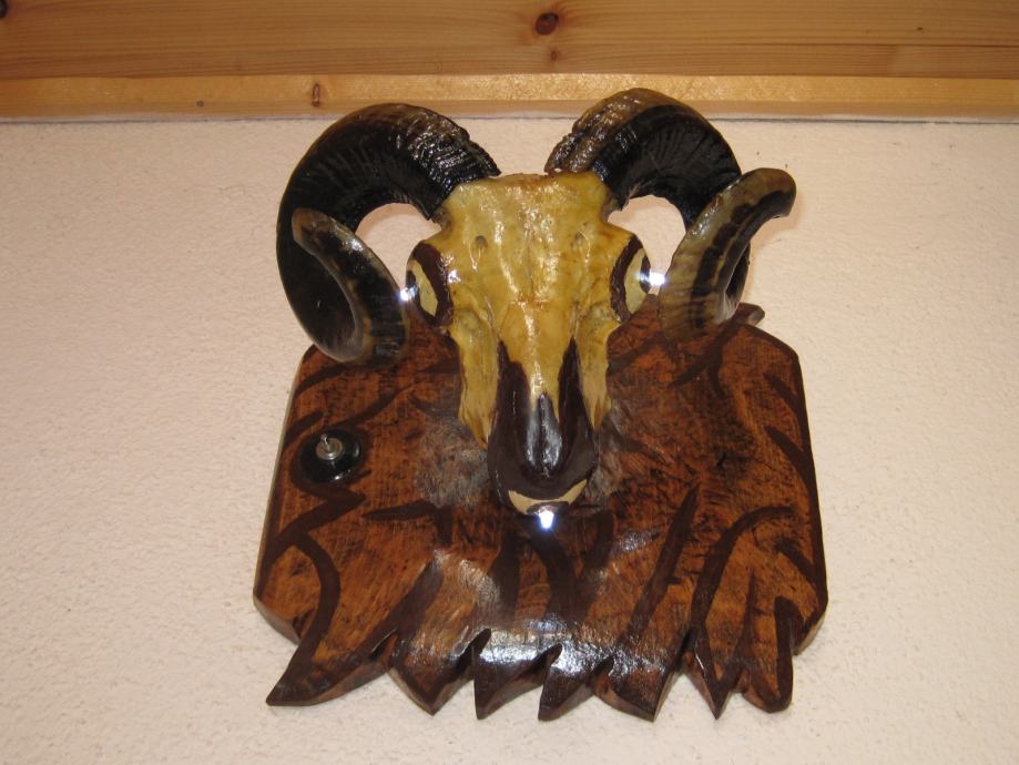 Glava je prethodno skuhana , te je svo tkivo izvađeno iz nje . Nakon toga je stajala još 3-4 mijeseca i onda se pristupilo obradi ... Unutar lubanje su postavljene tri plastične cijevčice , i na njihove krajeve stavljene LED diode . Diode su spojene vodičima na jednom kraju , a na drugom sa baterijom 4,5 V i prekidačom . Također je postavljena metalna cijev kroz koju vode eloektroinstalacije , i koja služi za povezivanje glave sa postoljem ...