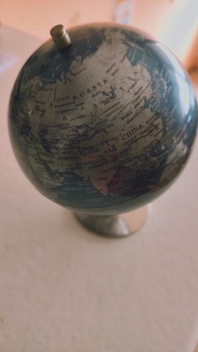 Globus plave i srebrne boje, svijet u malom, na stalku, može se okretati, lijep poklon učenicima i ljubiteljima geografije